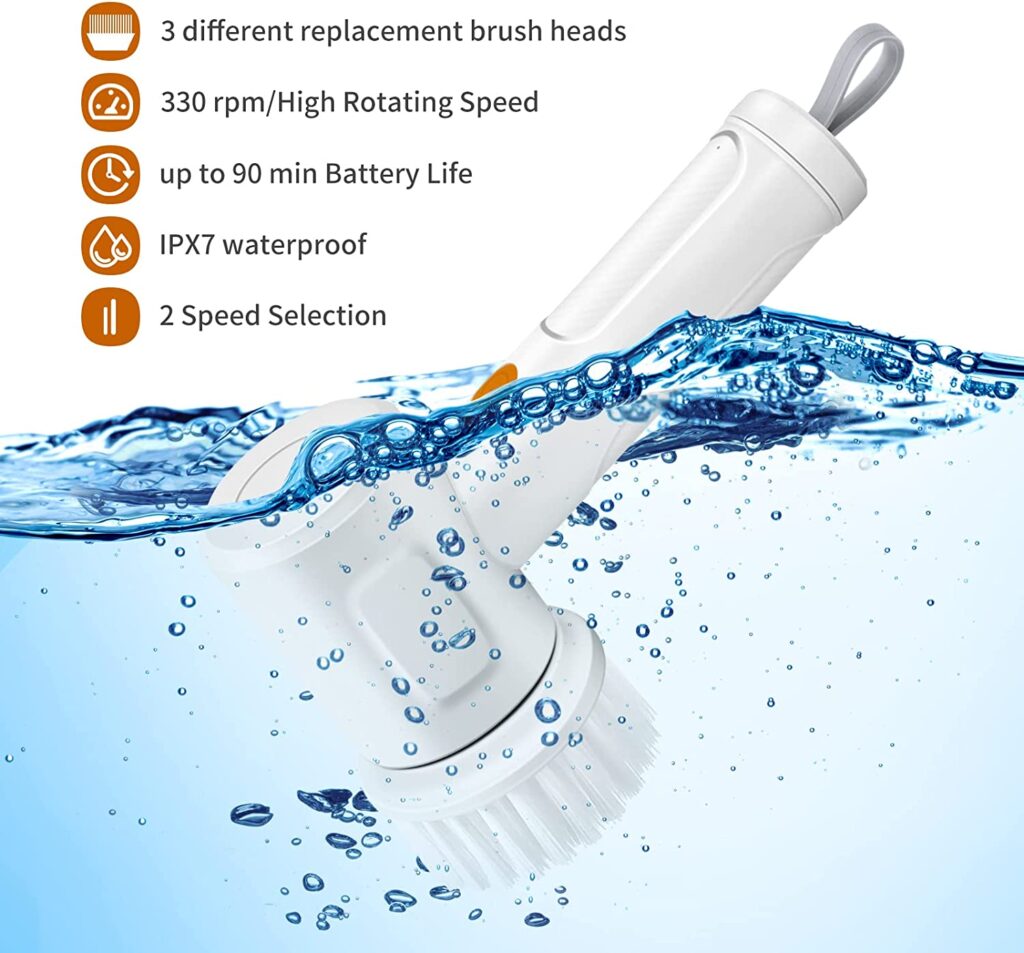 It’s with IPX7 waterproof, so it can clean the bath tub under the water. It can be directly washed under water tap.