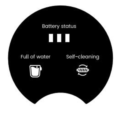 The LED display indicates the power volume, charging status, water tank alert and self-cleaning the roller.