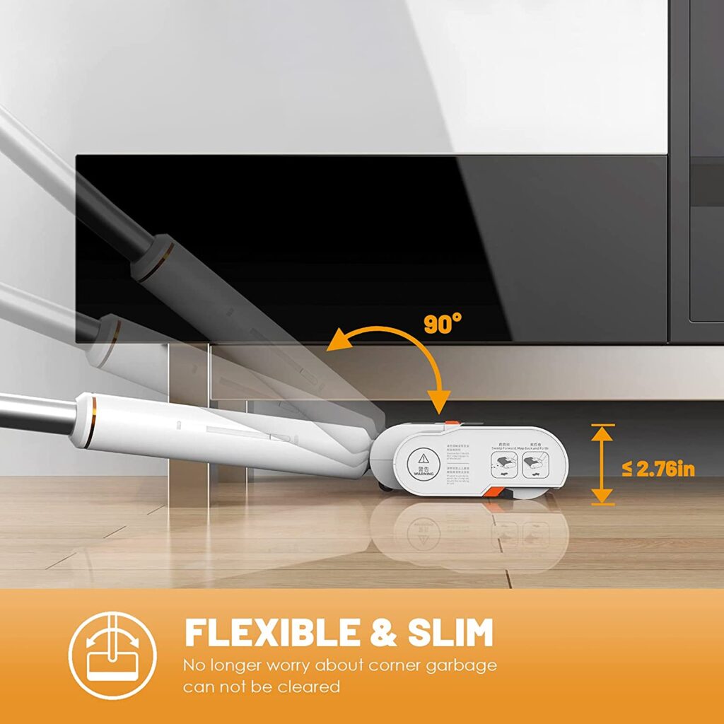 With flexible & slim design, it can effectively do under-furtnitur cleaning, and flexible steering operation.