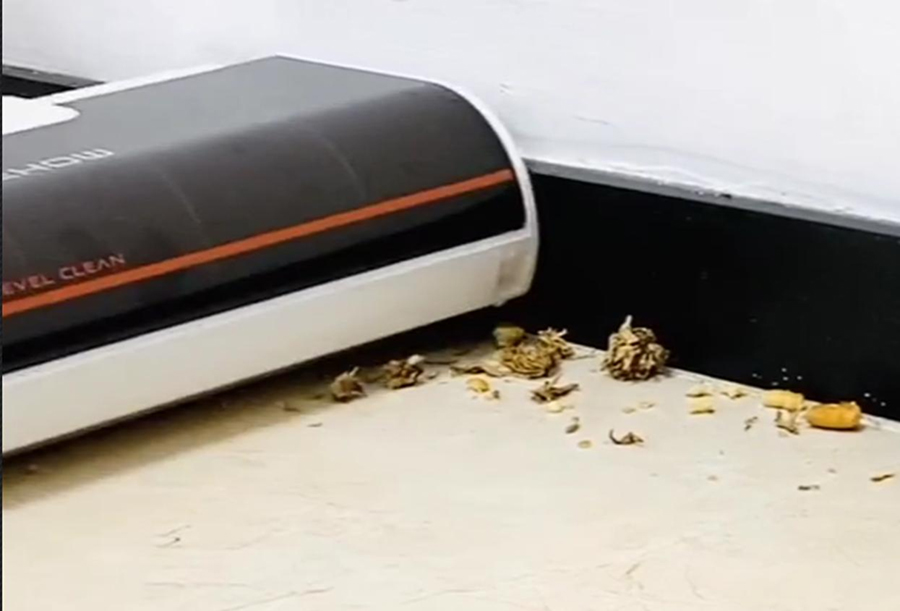 Only need to press one button, it will self-clean the roller and the solid debris will be separated from the tray. Very convenient to use