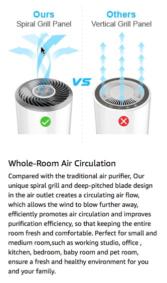 With this innovative spriral outlet design, the clean air can reach the whole room more efficiently