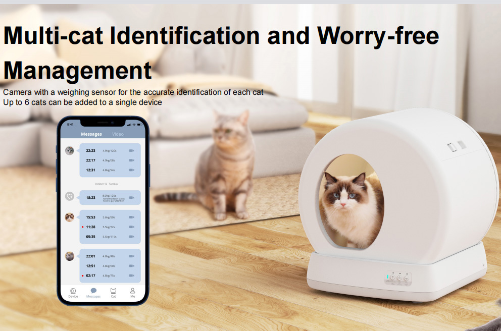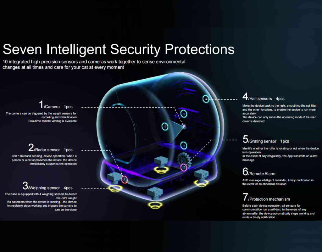 * Function: self-cleaning cat’s excrement, monitor cat’s health status
