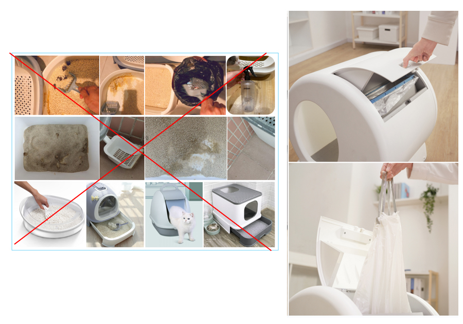 It’s used for collecting and self-cleaning pet cat excrement. It’s easy to discard the garbage bag and be disassembled for washing. The anti-stick technology will help to clean it easily.